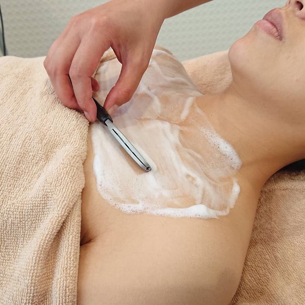 和装シェービング 120分¥8,500クレンジング・えり足少し深め.首.お顔のシェービング・お顔超音波洗浄・お顔のマッサージ・ヘッドマッサージ・お顔パック(お肌に合った)・お仕上げ |
